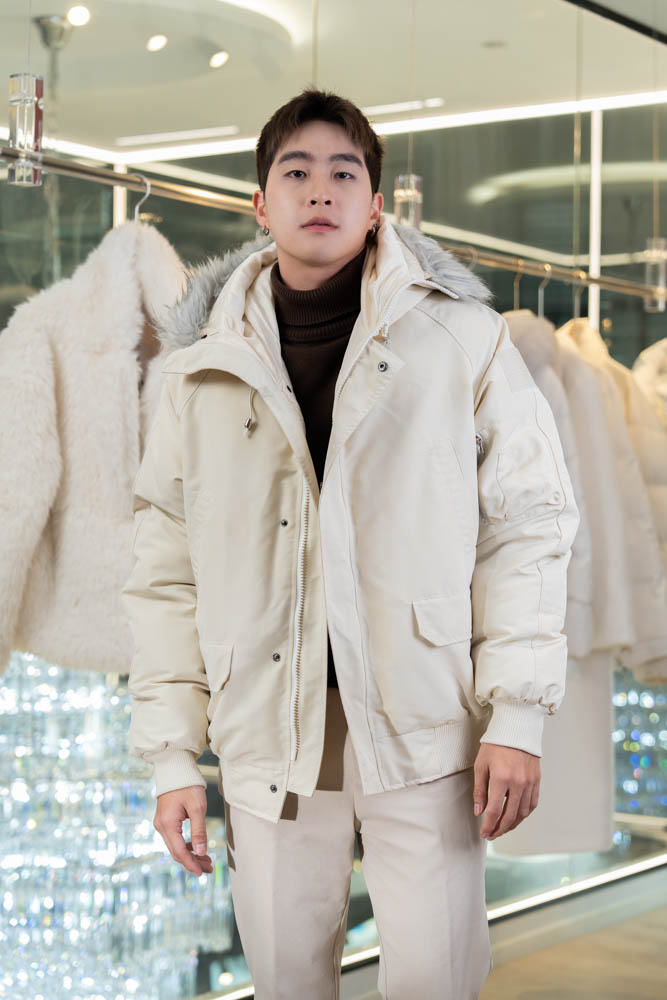 เสื้อขนเป็ด Man + ขนเฟอร์ สีครีม