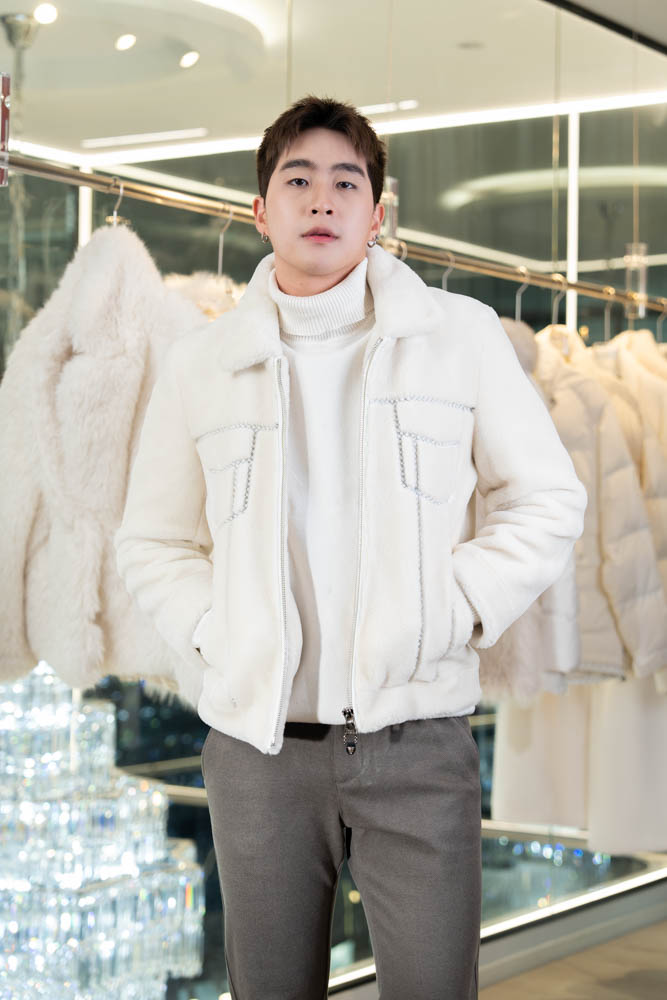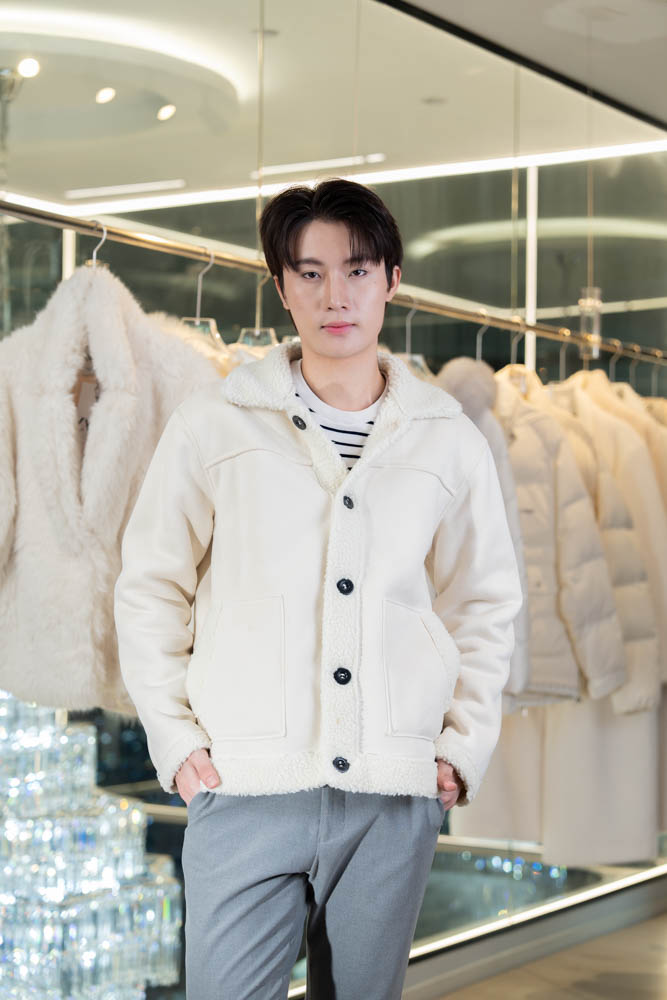 เสื้อแจ็คเก็ต เกาหลีหนังสีครีม