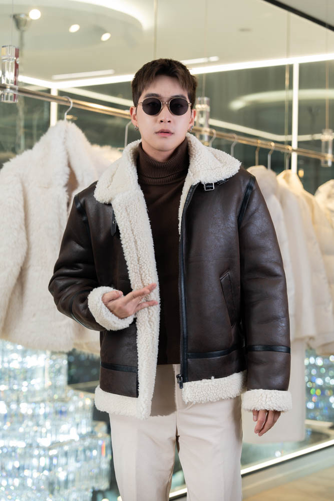 แจ็คเก็ตขนเฟอร์ Men สีน้ำตาล