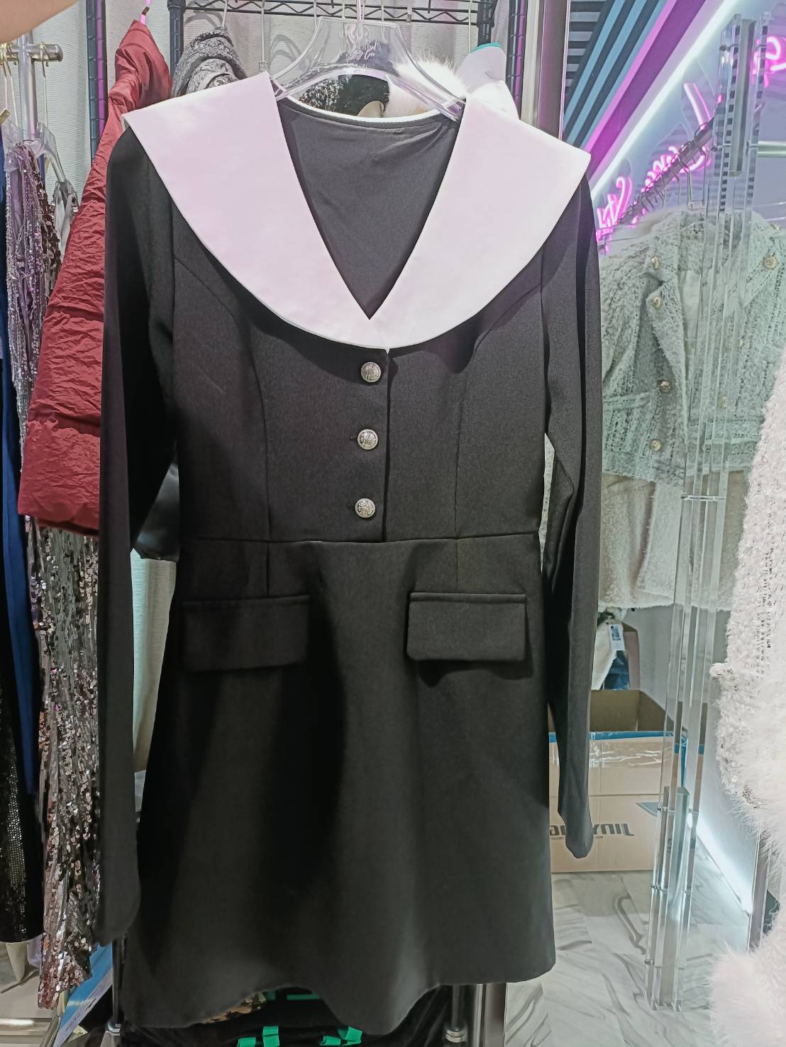 เดรสสั้นคอปกขาว