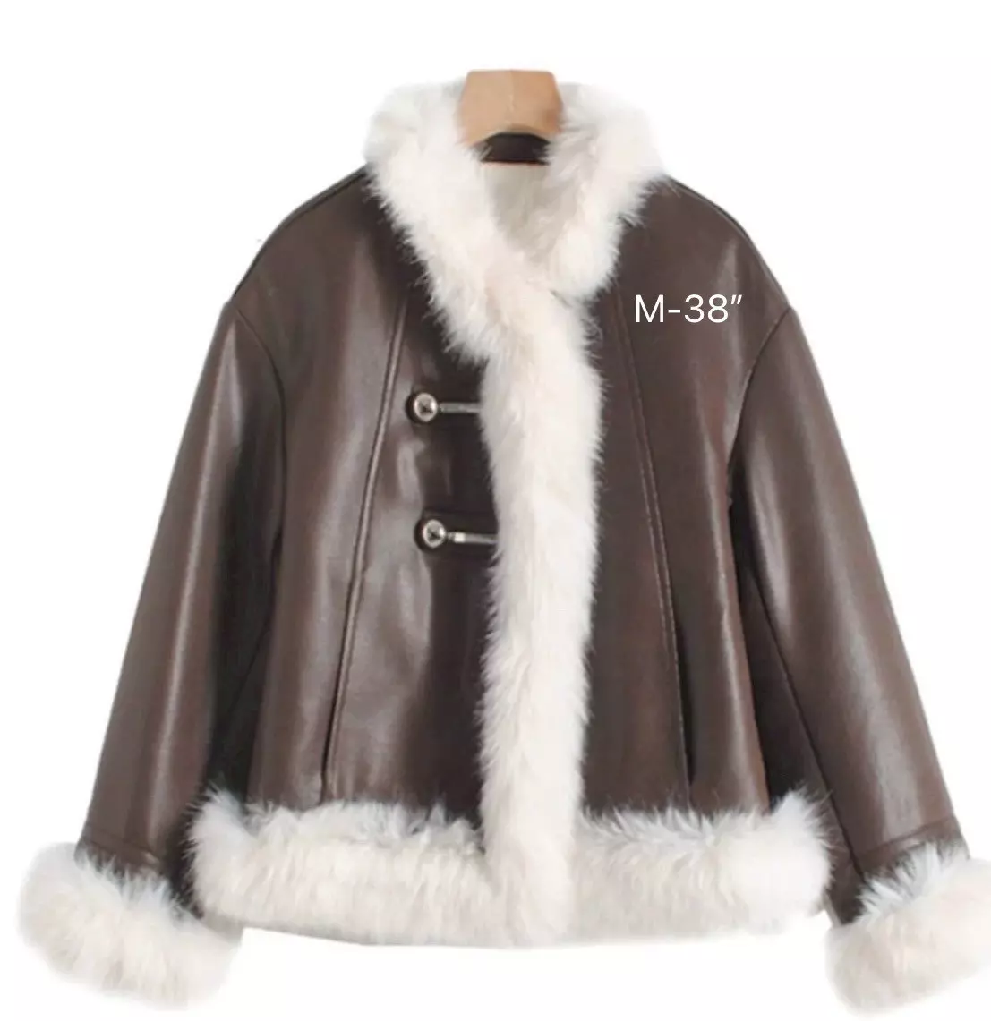 แจ็คเก็ตหนัง แต่งขนเฟอร์ สีน้ำตาล